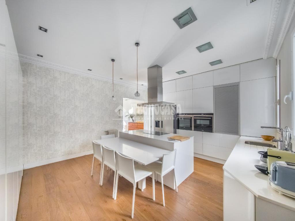 La propiedad cuenta con una impresionante cocina de gran tamaño, completamente equipada con electrodomésticos panelados en blanco que aportan armonía visual al espacio. Destaca su elegante isla de obra con campana extractora de acero, perfecta tanto para el día a día como para disfrutar de reuniones, cuenta con una zona de comedor adicional con capacidad para hasta 4 comensales.