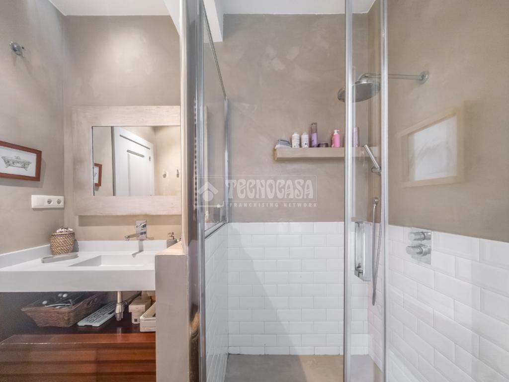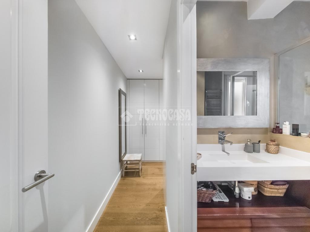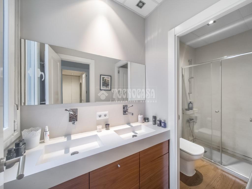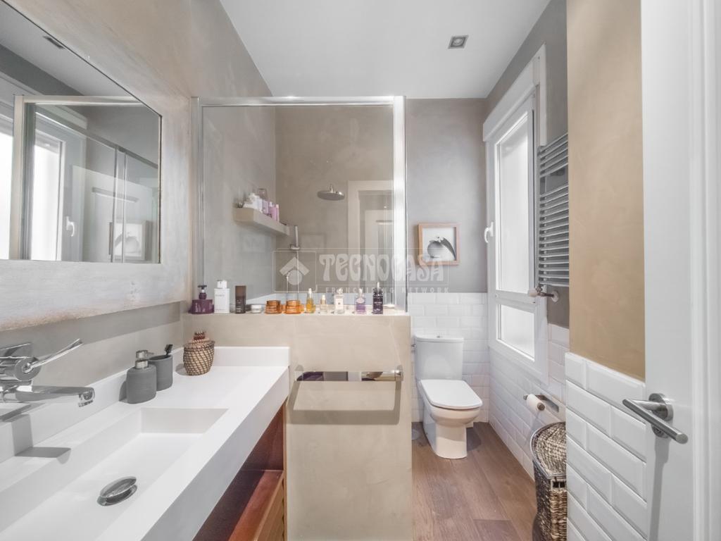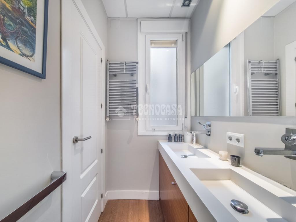 La vivienda se completa con dos baños: uno en suite y otro independiente, muy amplio, con doble lavabo y zonas diferenciadas de ducha y WC, además de ventana que favorece la ventilación natural.